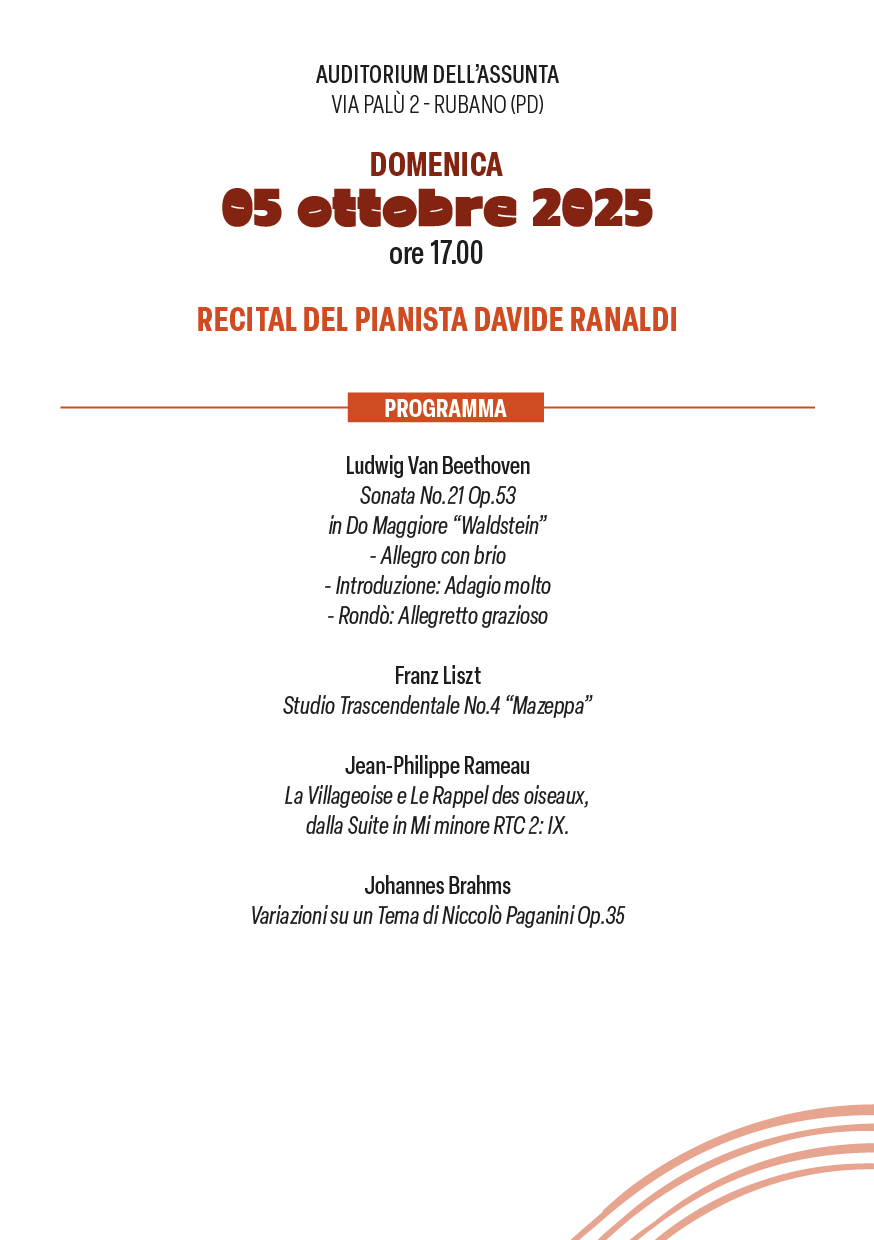 Domenica 5 OTTOBRE 2025 presso l’Auditorium dell’Assunta alle ore 17.00