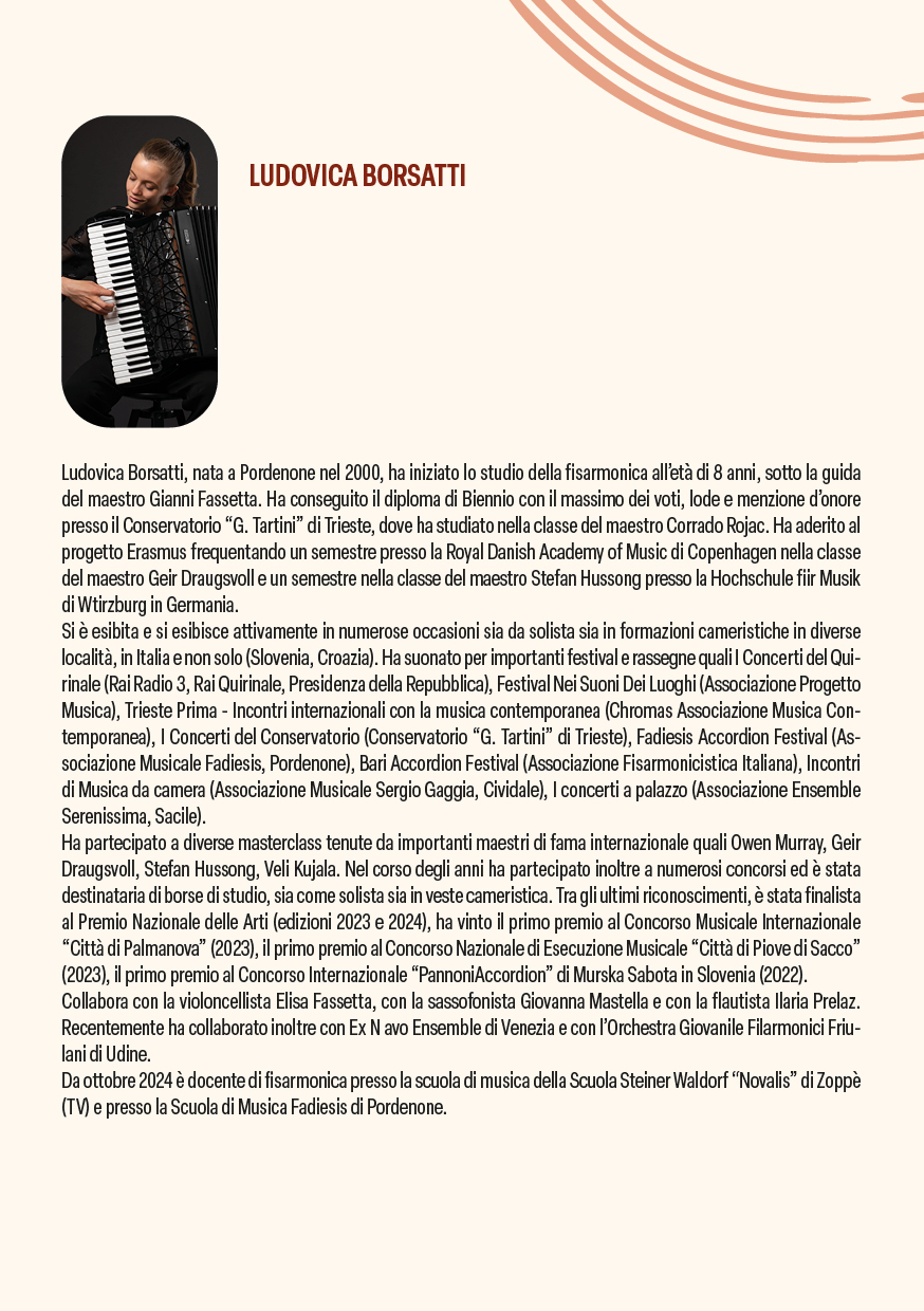 INTRECCI D’ANCE, UNA SUITE PER FISARMONICA LUDOVICA BORSATTI, FISARMONICA