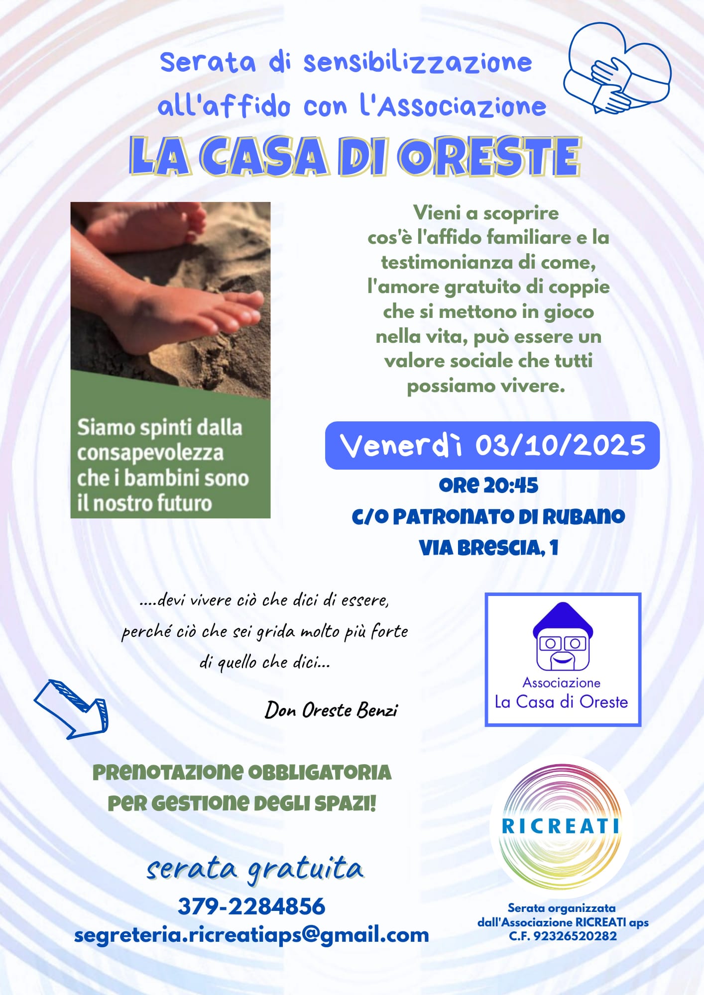 Serata di sensibilizzazione all’Affido con l’Associazione