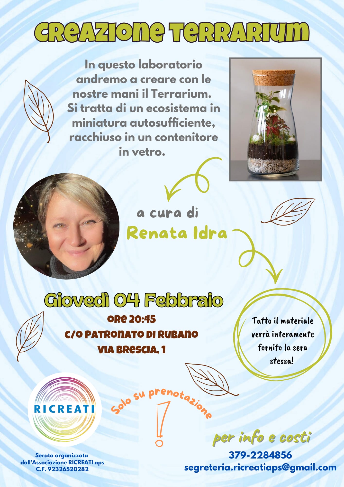 L’Associazione RICREATI presenta: LABORATORIO – CREAZIONE DI UN TERRARIUM