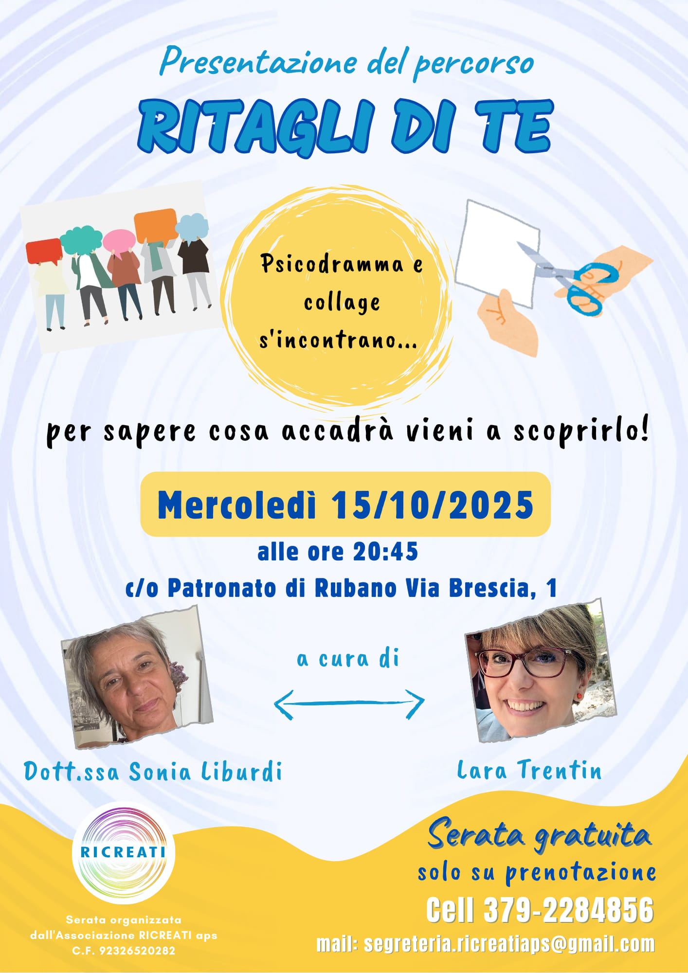 Per info e costi: cell.379-2284856 o mail segreteria.ricreatiaps@gmail.com