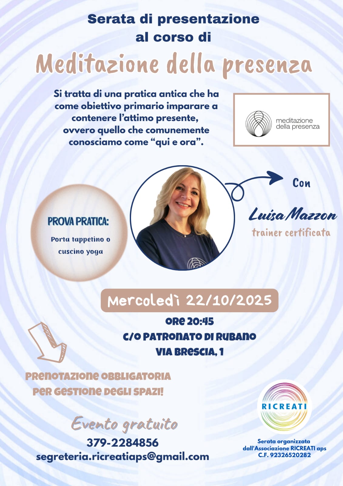 Per info e costi: cell.379-2284856 o mail segreteria.ricreatiaps@gmail.com