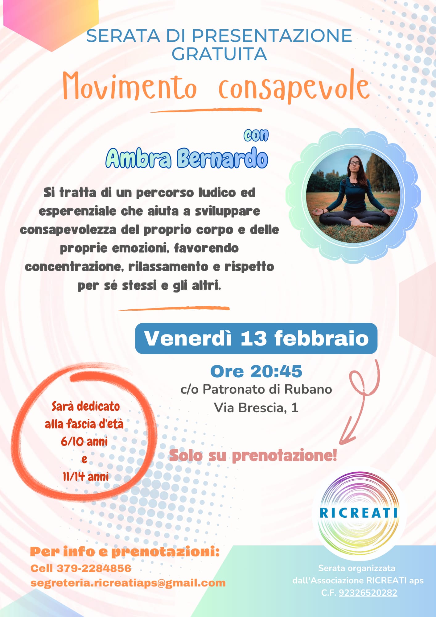Cari genitori, siete invitati alla serata di presentazione gratuita del percorso: MOVIMENTO CONSAPEVOLE!